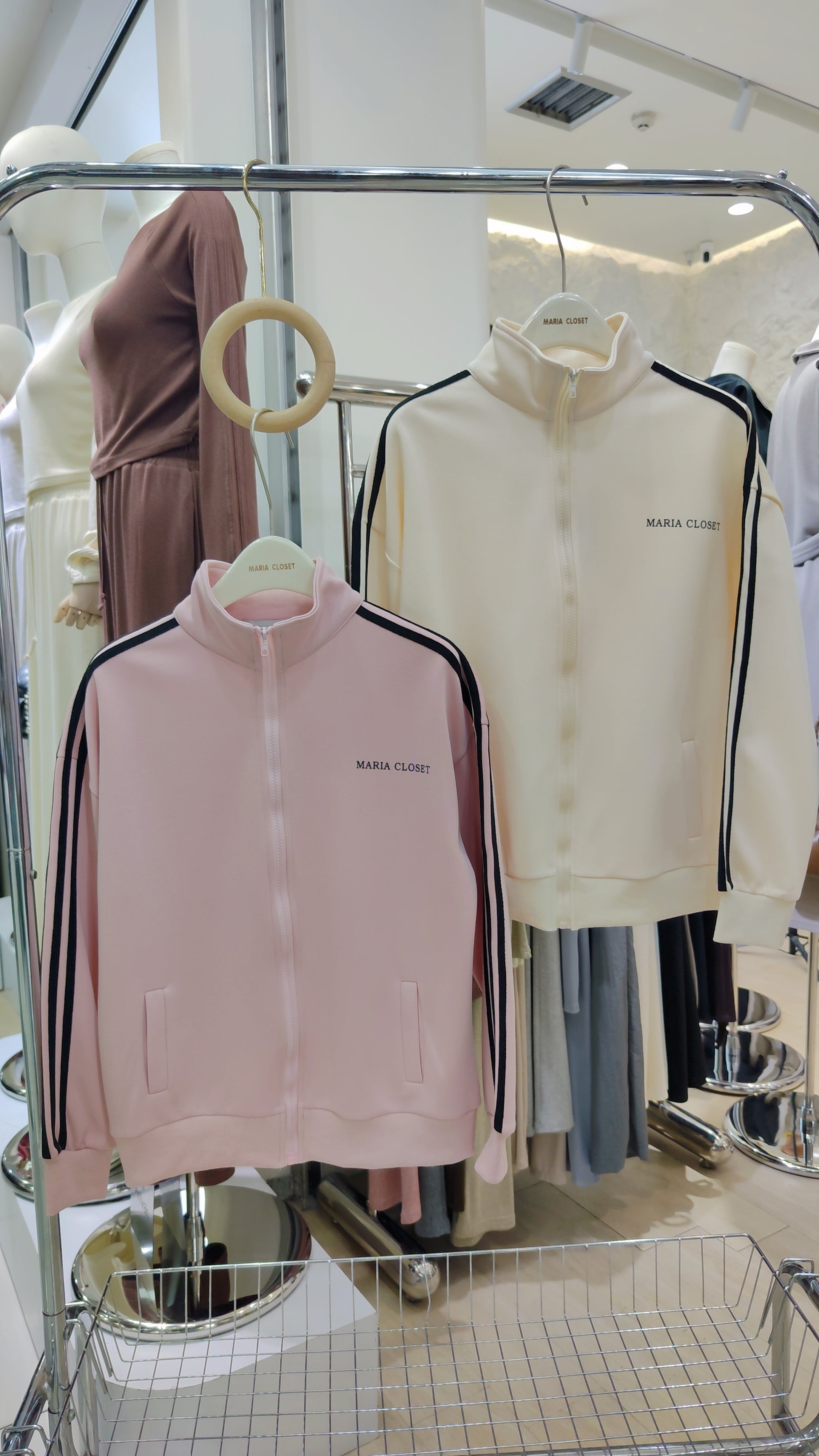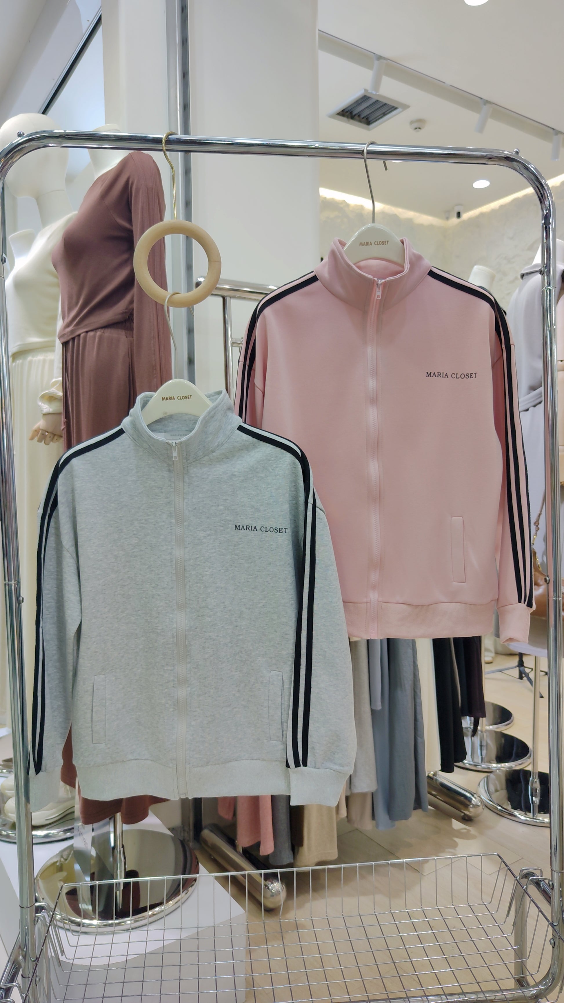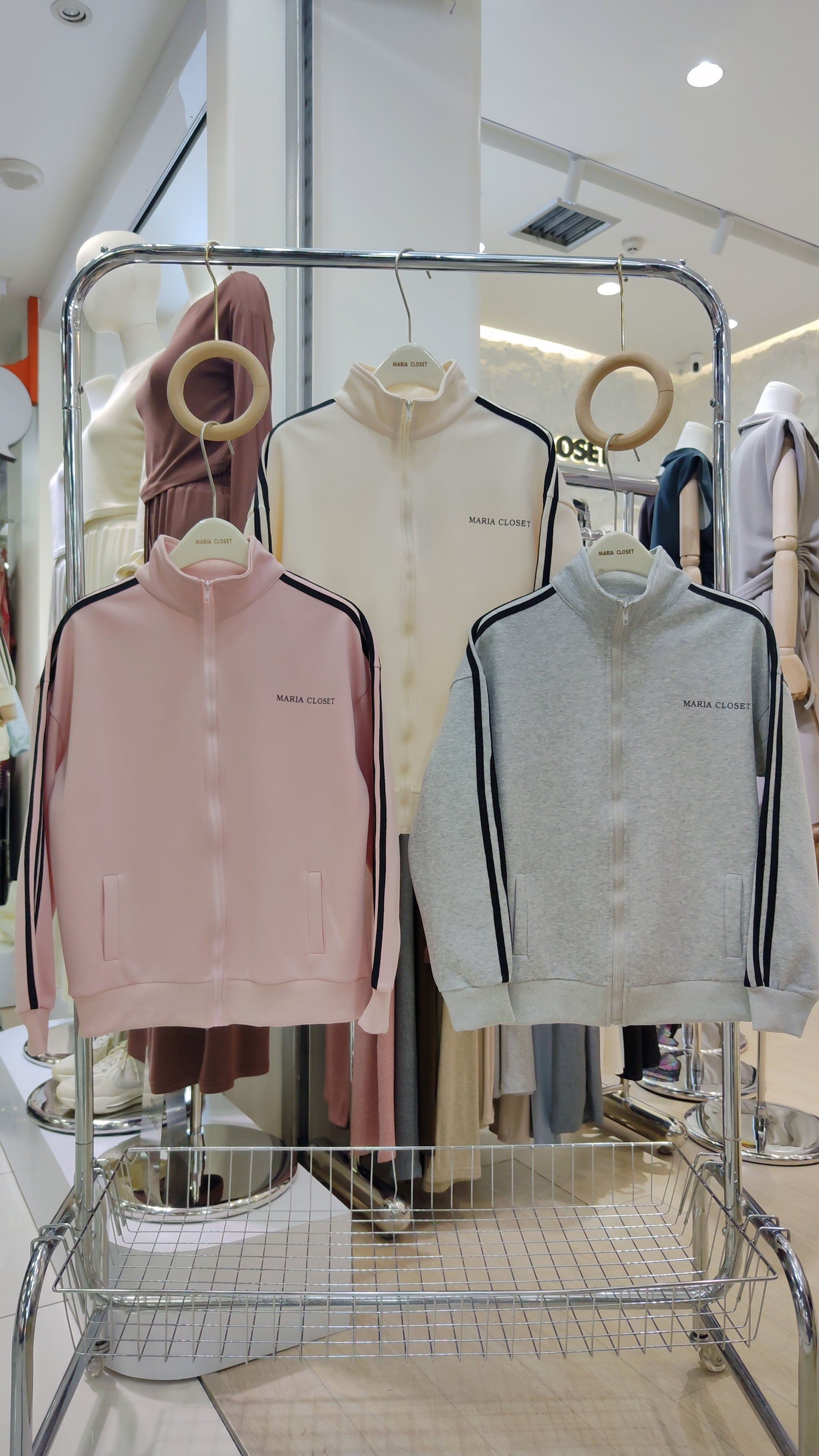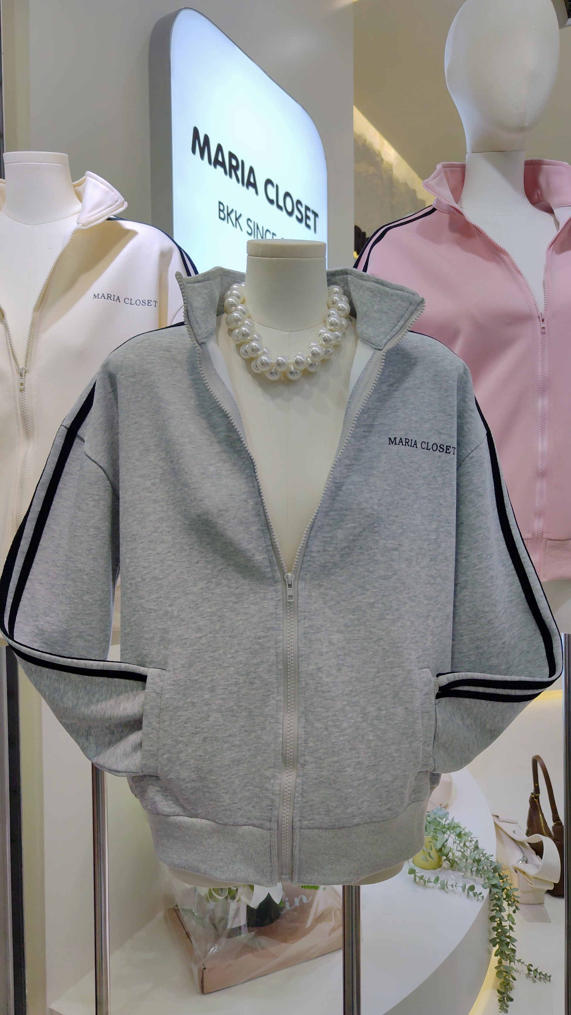 Define your style with a touch of classic, sporty cool. This zip-up track jacket is a timeless wardrobe essential, featuring our signature printed Maria Closet logo and iconic contrast stripes down the sleeves. Crafted from a soft, comfortable fabric with a high-neck collar, it's the perfect versatile piece for a casual day out, a post-workout coffee run, or simply layering for an effortlessly chic athleisure look.