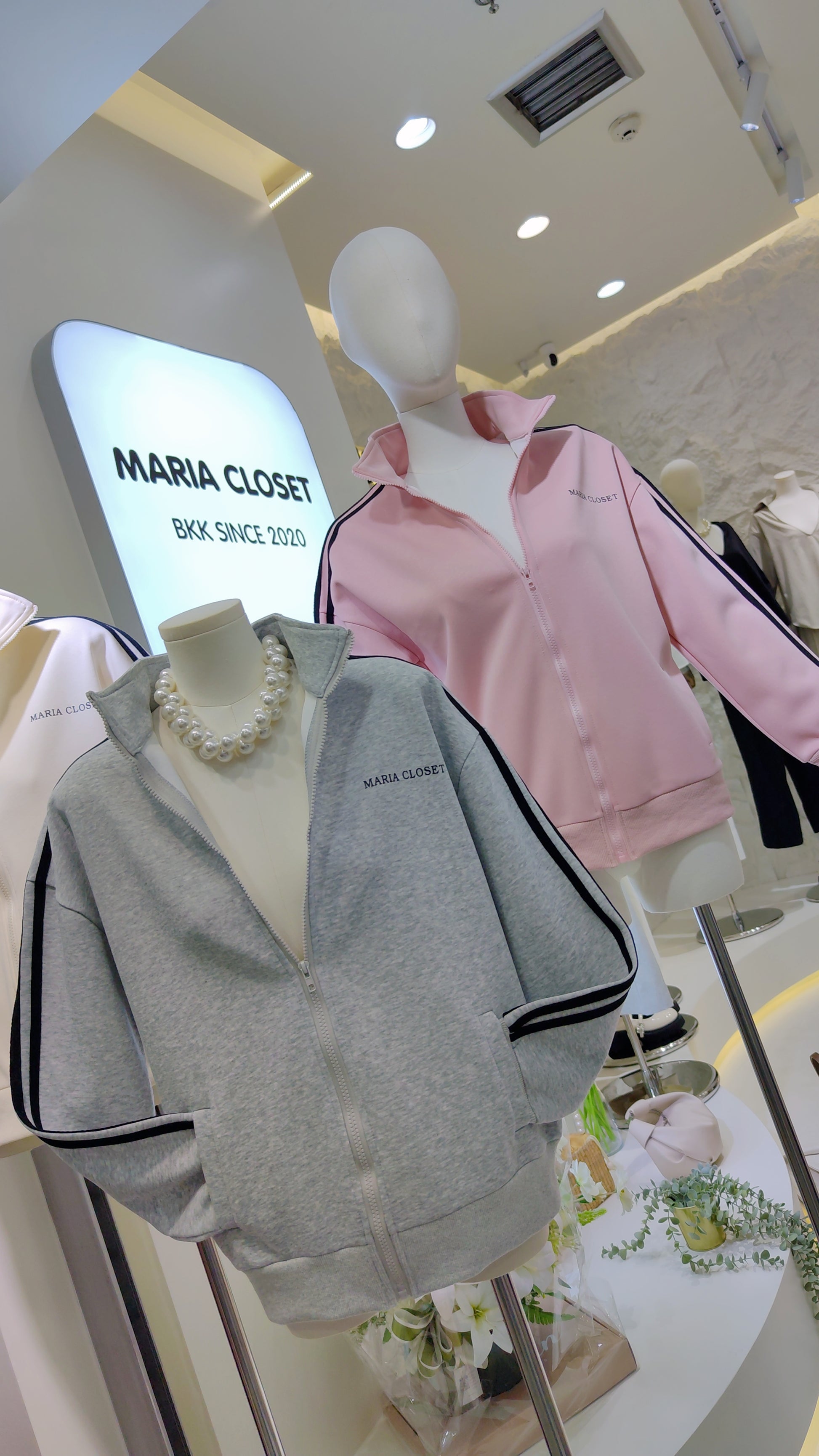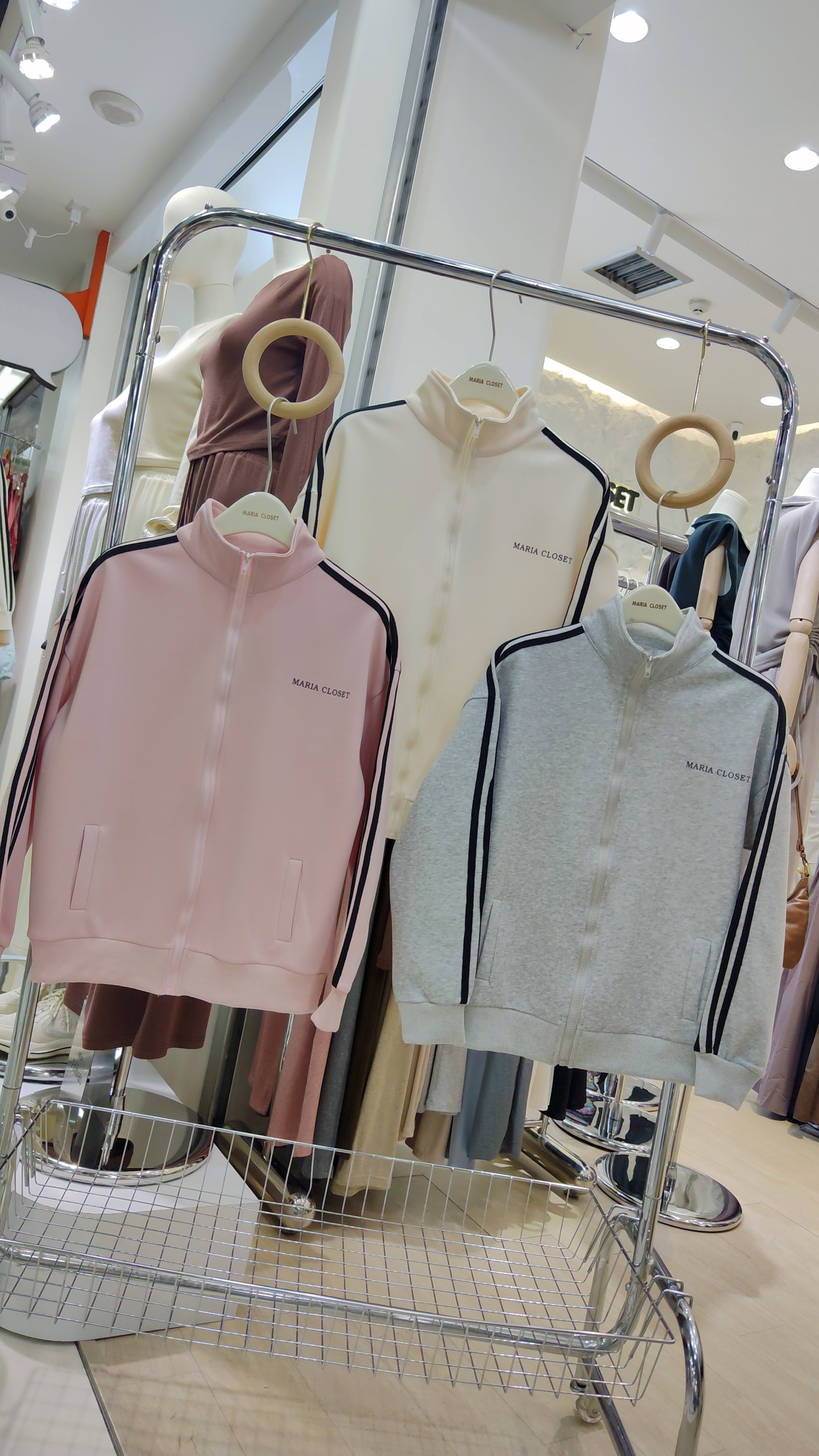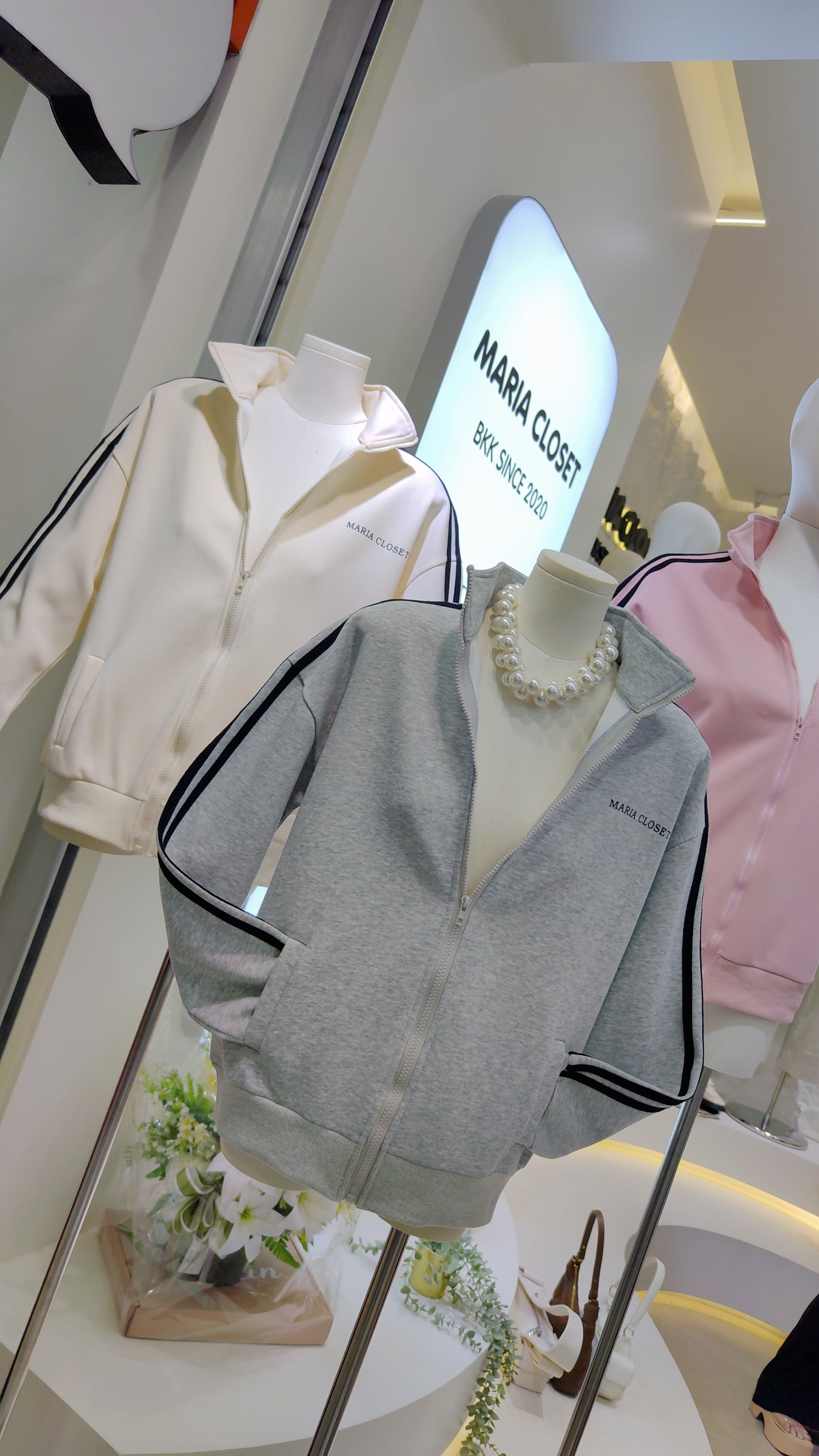 Define your style with a touch of classic, sporty cool. This zip-up track jacket is a timeless wardrobe essential, featuring our signature printed Maria Closet logo and iconic contrast stripes down the sleeves. Crafted from a soft, comfortable fabric with a high-neck collar, it's the perfect versatile piece for a casual day out, a post-workout coffee run, or simply layering for an effortlessly chic athleisure look.