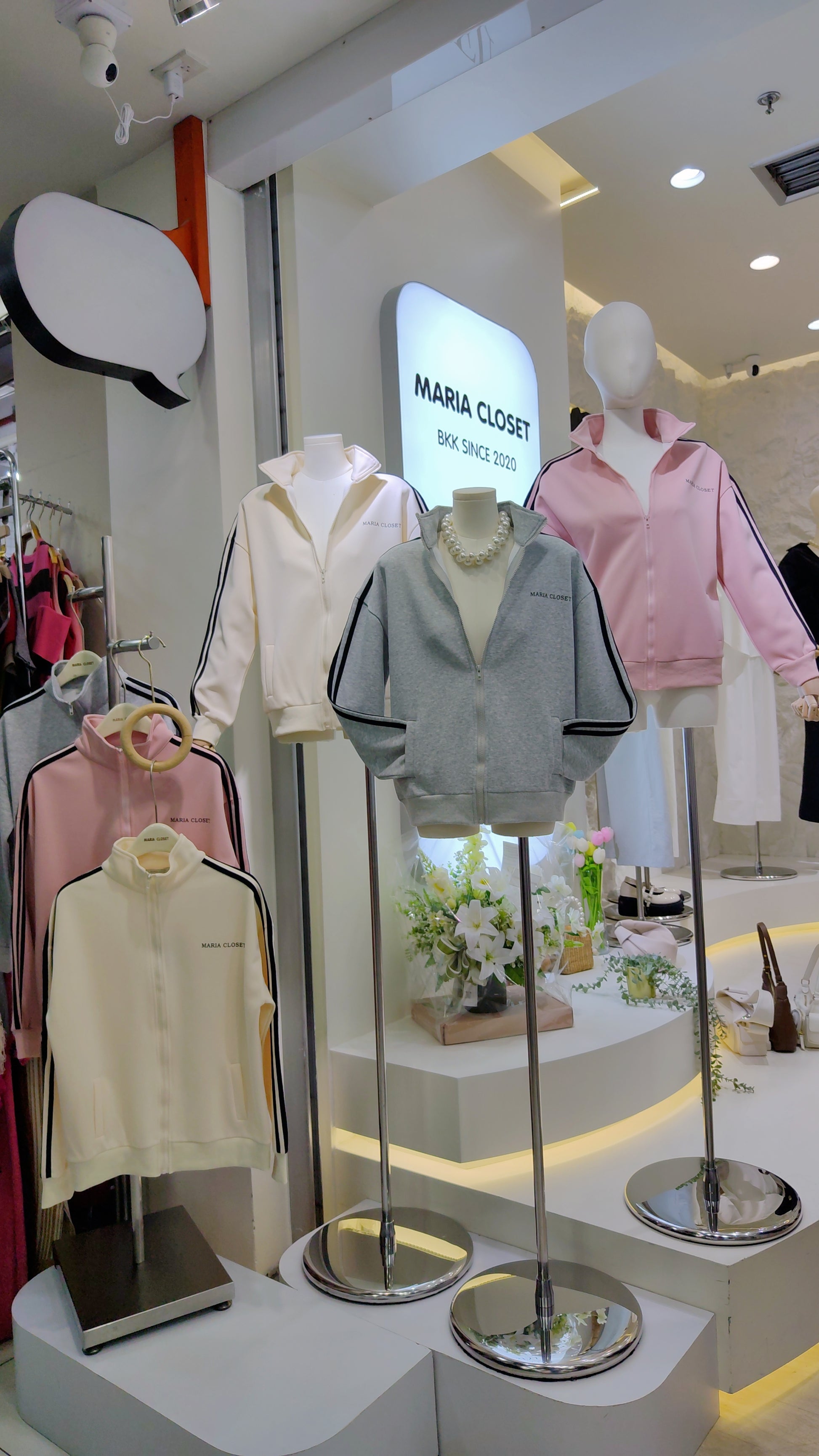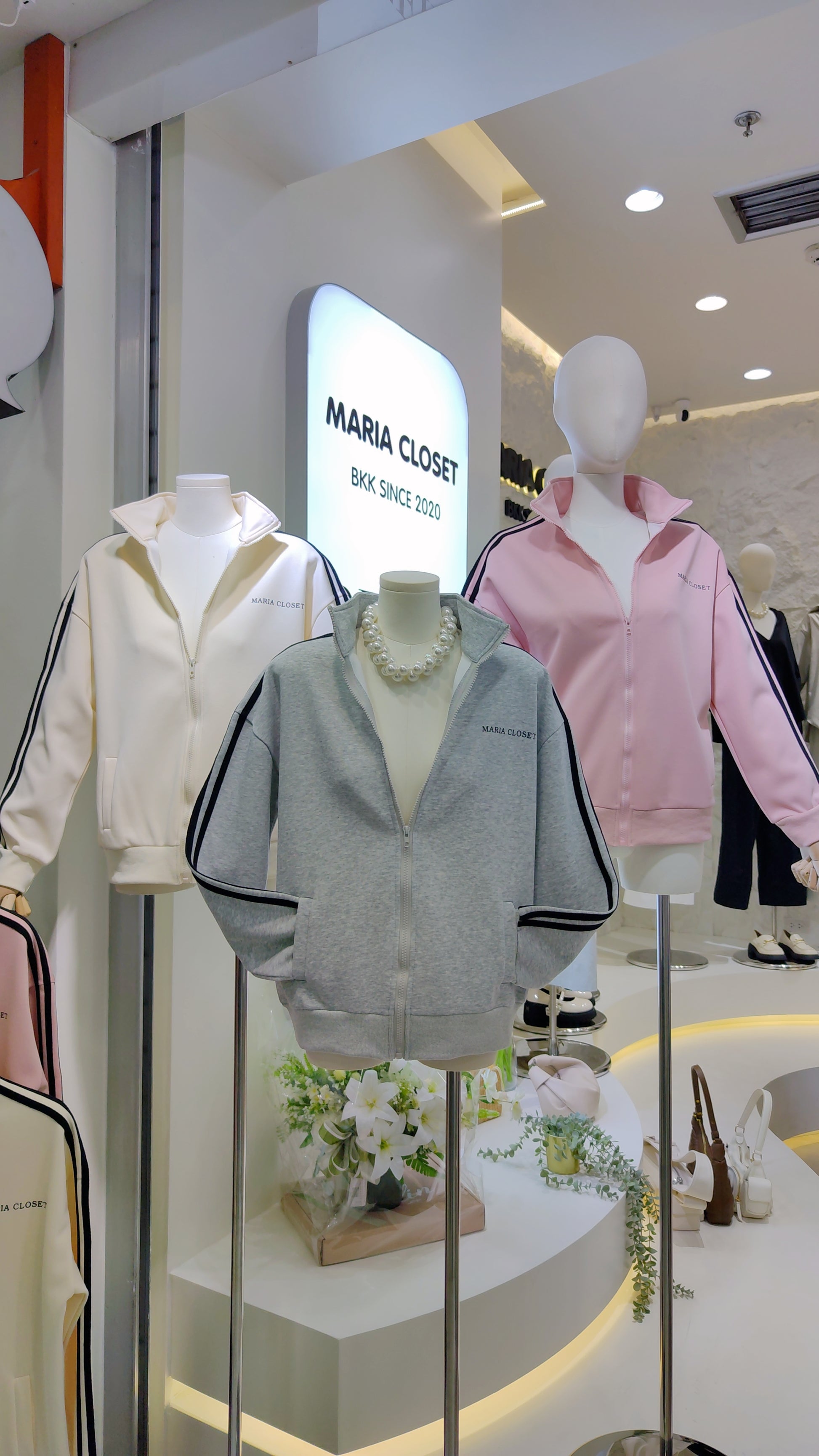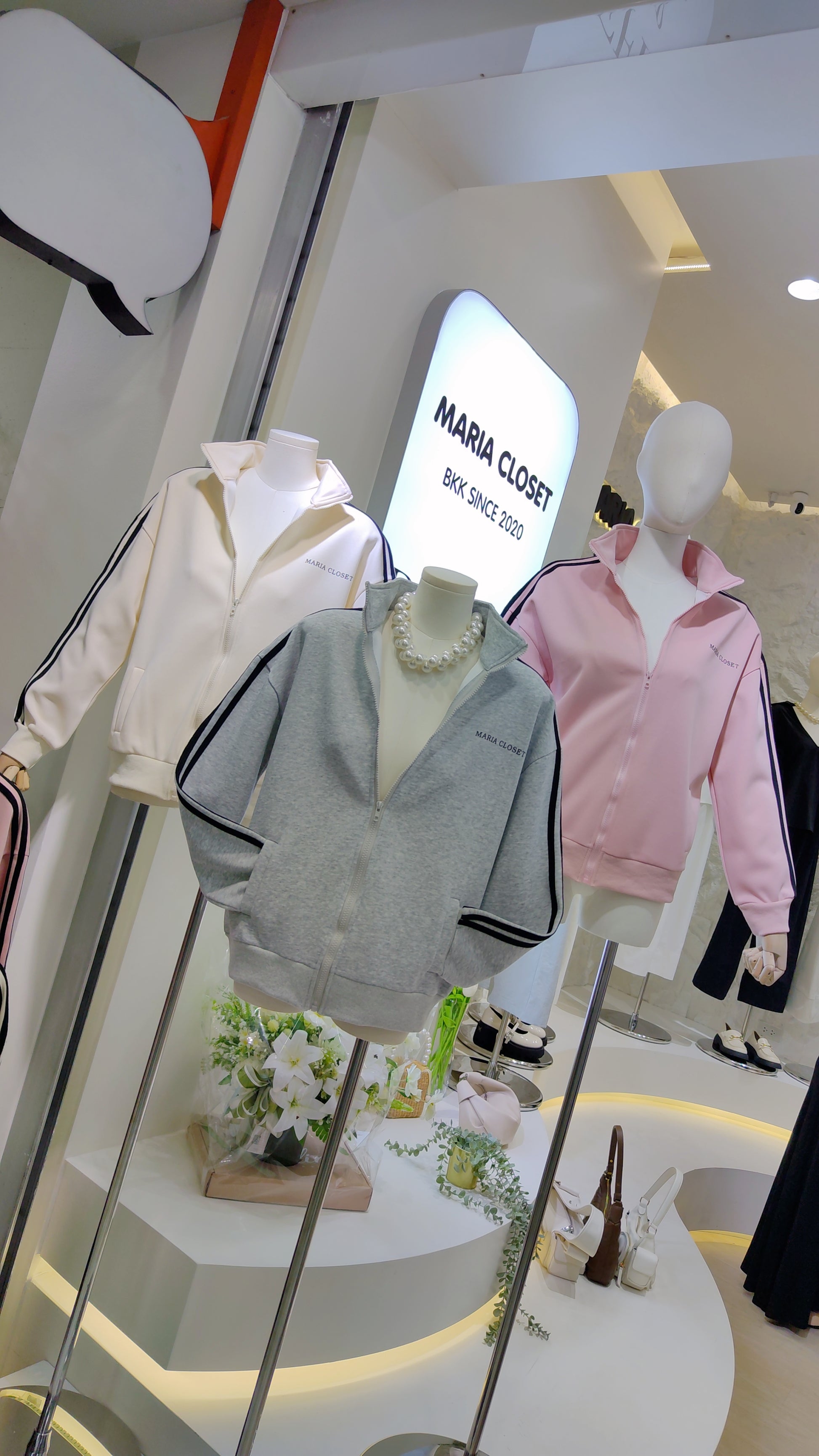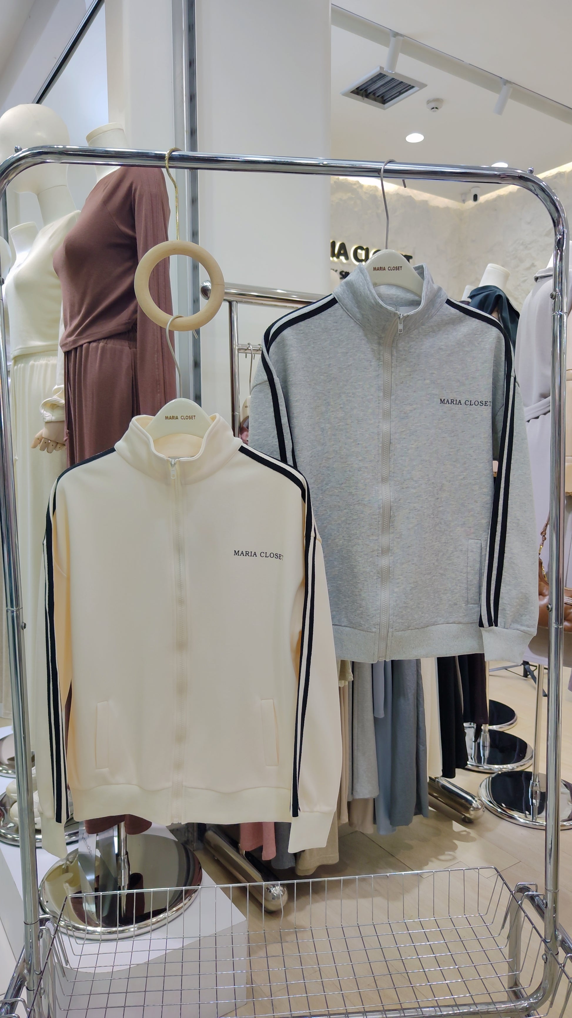 Define your style with a touch of classic, sporty cool. This zip-up track jacket is a timeless wardrobe essential, featuring our signature printed Maria Closet logo and iconic contrast stripes down the sleeves. Crafted from a soft, comfortable fabric with a high-neck collar, it's the perfect versatile piece for a casual day out, a post-workout coffee run, or simply layering for an effortlessly chic athleisure look.
