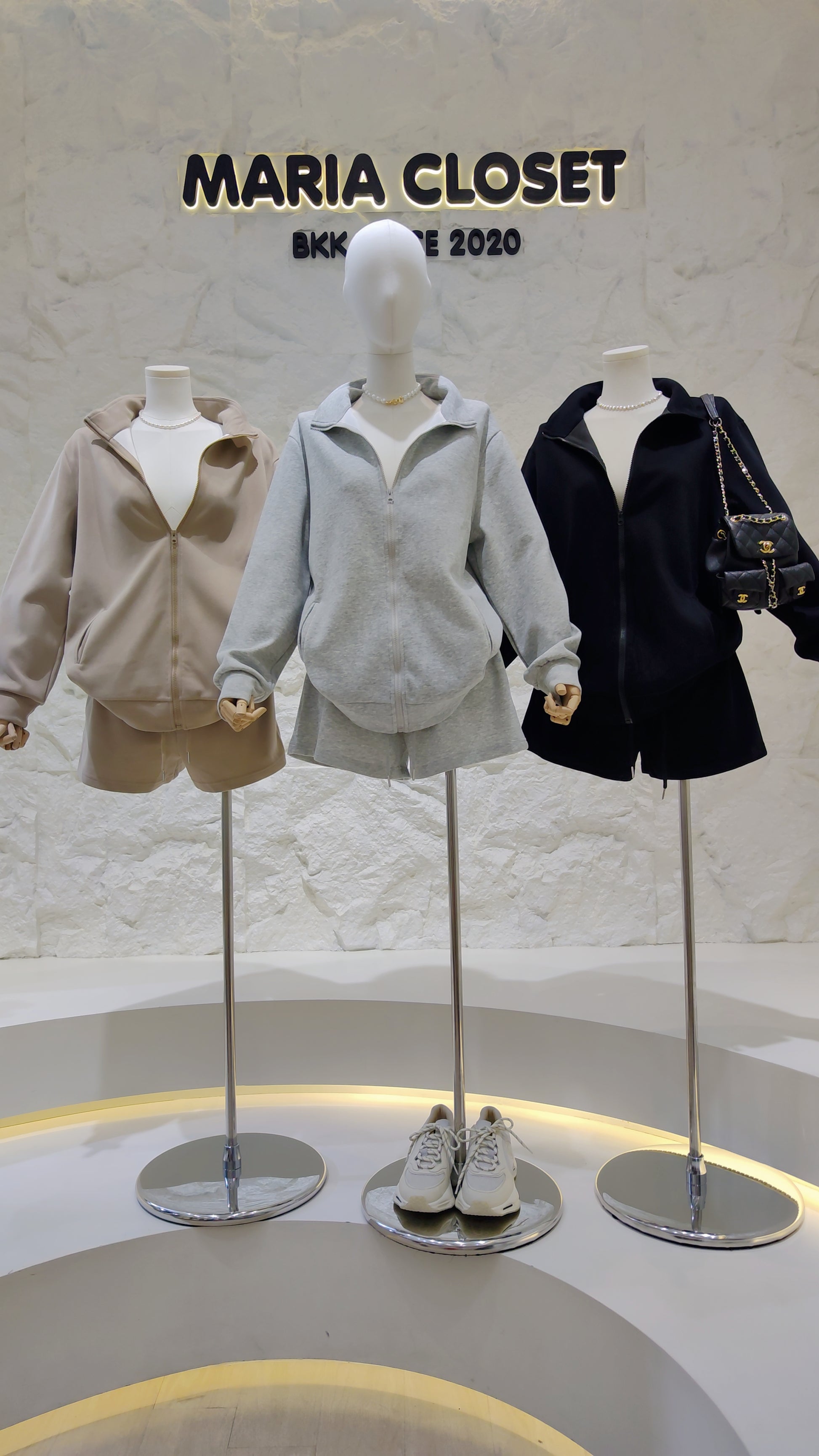 Details: A two-piece set including a long-sleeved, oversized full-zip jacket with a funnel neck and side pockets. Paired with matching high-waisted drawstring shorts.