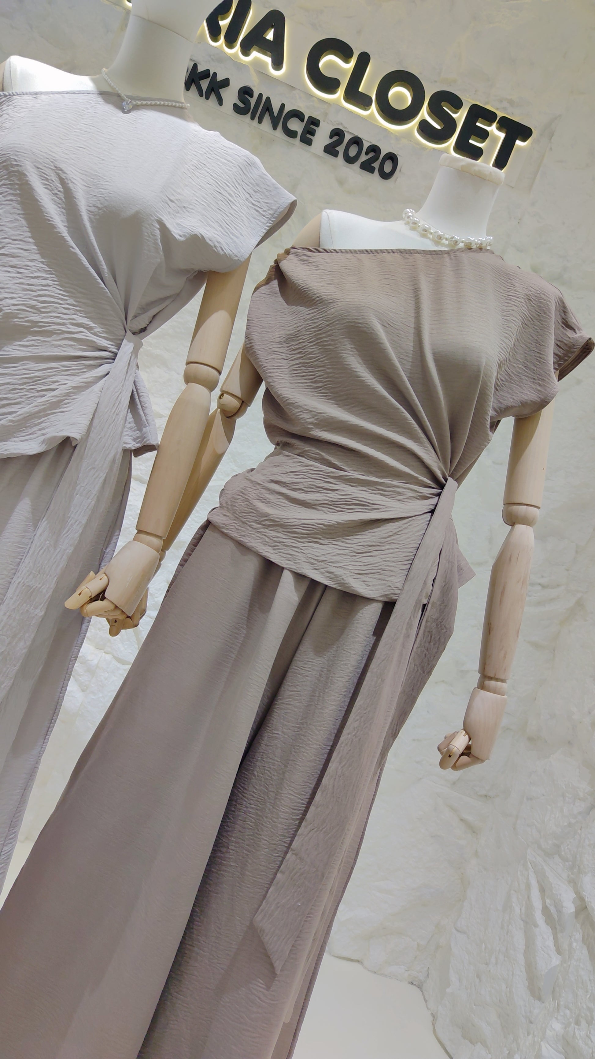 Exude effortless elegance in this beautifully draped two-piece set, designed to mimic the grace of Grecian statues. The stunning sleeveless top features a unique asymmetrical neckline that flows into a dramatic, draped panel over one shoulder. An integrated long tie belt wraps around the waist, allowing you to cinch the silhouette and create soft, flattering gathers. This top is paired with matching high-waisted, wide-leg trousers that offer a comfortable, flowing counterpoint. Crafted from a lightweight fabric with a sophisticated crinkle texture, this set combines comfort with high-fashion artistry.